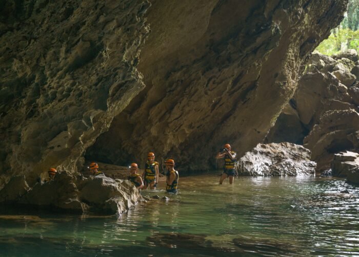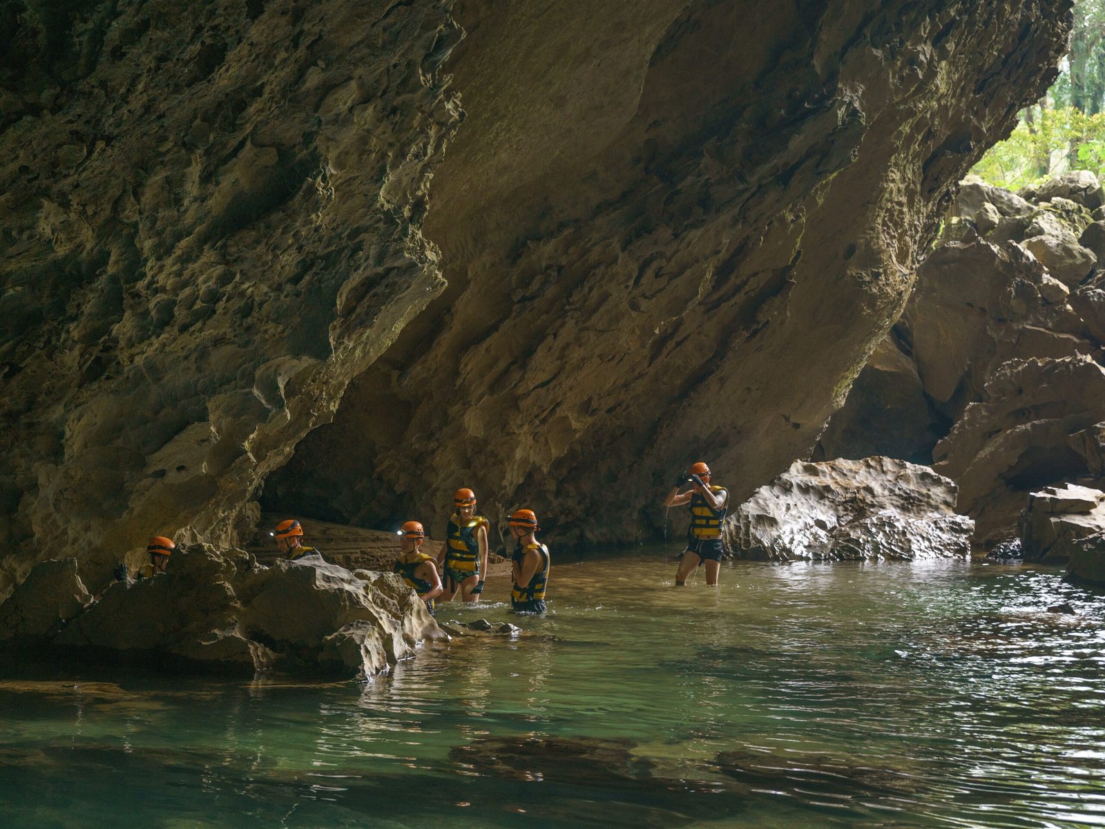 10:00: Đến cửa hang Trạ Ang và chuẩn bị trang thiết bị an toàn khám phá hang Trạ Ang.