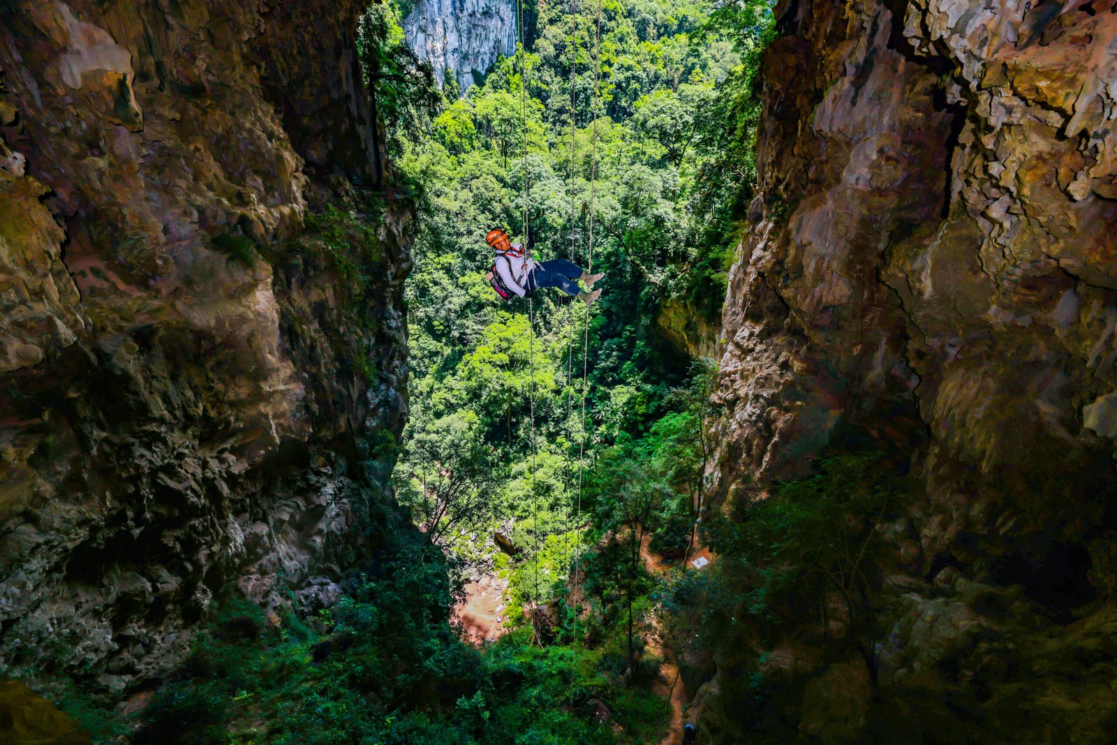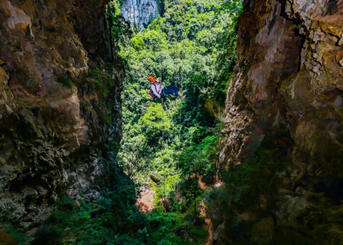 10:00-15:00: Bắt đầu đu dây từ hốc mắt hố sụt. Bữa trưa ăn nhẹ ở khu vực hốc mắt hố sụt.