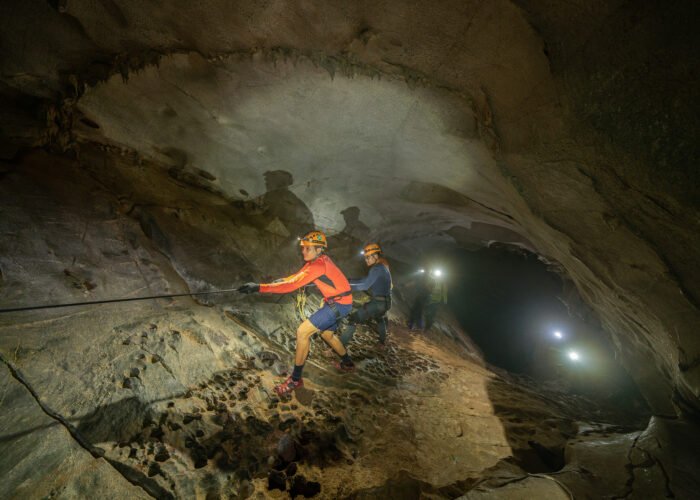 14:30-15:00: Đu dây 20m để ra cửa hang Thung.