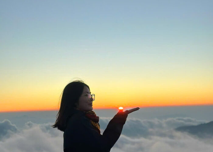 06h30: Chạm tới đỉnh Lùng Cúng, đoàn nghỉ ngơi, chụp ảnh check in và thưởng ngoạn phong cảnh trên đỉnh núi.