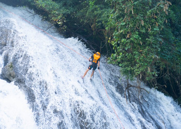 12:00-12:30: Ăn trưa dưới chân thác Tà Puồng, di chuyển lên đỉnh thác theo hệ thống dây an toàn.
